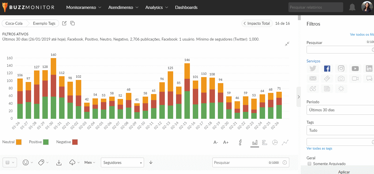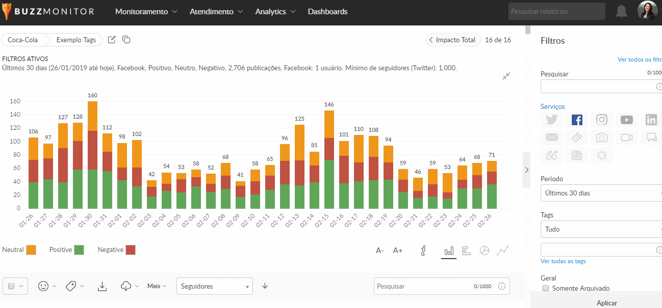 Por exemplo: o cliente faz um post elogiando o produto de determinada marca. Ao invés de taguear a interação apenas com a tag “Elogio” é possível tagueá-la com a subtag “elogio_produto”, para no final do monitoramento montar um relatório identificando exatamente quantos elogios foram feitos sobre produto.