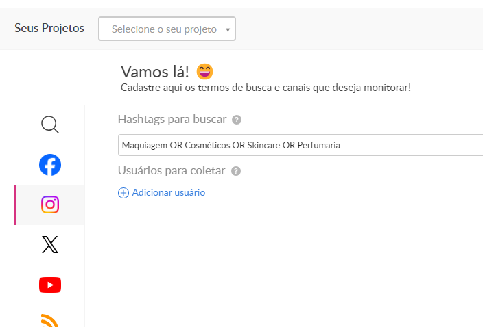 Suponhamos que você tenha uma marca do setor de cosméticos e precisa de influenciadores que falam sobre o assunto para a divulgação dos seus produtos. O primeiro passo que você precisa é selecionar termos que sejam do seu nicho para cadastrar no social listening.
