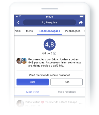Para recomendar uma página, os clientes devem apenas responder com “Sim” ou “Não” se desejam recomendá-la. Essa opção aparece na tela do usuário ao marcar uma página comercial em uma foto ou publicação.