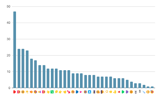 Emojis que contêm coração foram os mais utilizados, somando mais de 116 milhões de aparições.