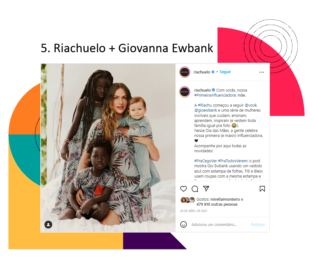 Já a marca que mais aparece nesse ranking é a Riachuelo, uma das empresas que fez parceria com a Giovanna Ewbank. Do Top 20 Dia das Mães 2021, quatro posts foram de ações da Riachuelo.