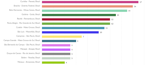 Já nos posts sobre Chocotone, a cidade de Curitiba domina o topo do ranking, seguida de Brasília e Belo Horizonte.