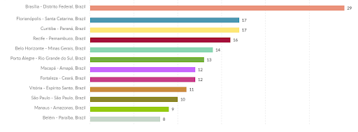Nas postagens do Twitter, distinguimos de onde os usuários mais postam sobre o tema. Quando falamos de Panetone, o maior volume de menções vem de Brasília, seguindo de Florianópolis e Curitiba.