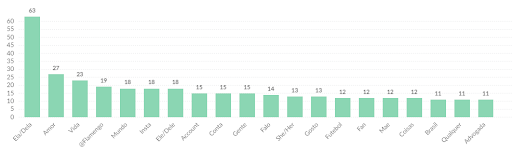 Já na biografia de quem cita chocotone, percebemos menções a termos relacionados ao futebol (“flamengo” e “futebol”). Outro fato que revela o perfil dos consumidores é que 3.6% são mães e 3.37% advogadas.