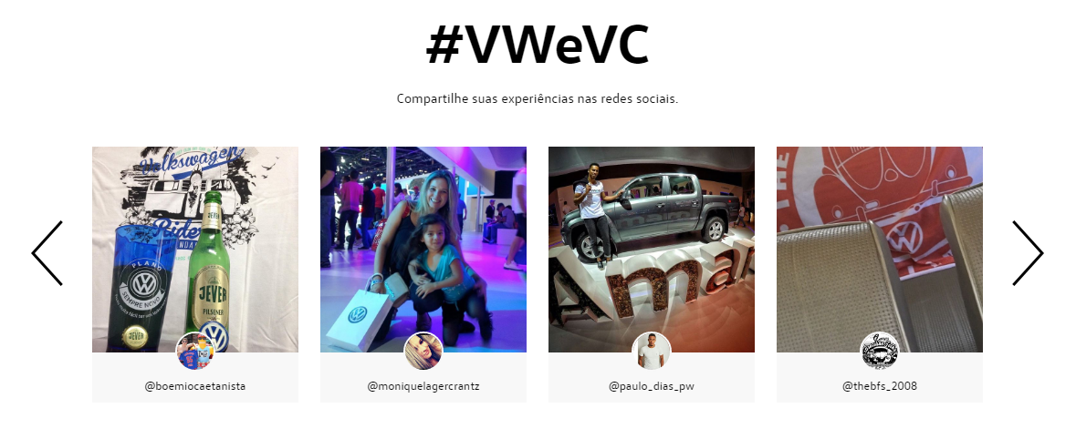 Para o site da montadora elaborado especialmente para o Salão do Automóvel, a E.life atuou na criação de uma página específica para divulgação de fotos com a hashtag #VWeVC. Para tanto, a E.life integrou, via API, o monitoramento do Instagram do Buzzmonitor, possibilitando que mesmo quem não participasse da exposição pudesse conferir os melhores registros do público. Já o conteúdo dos posts da Volkswagen ficou sob responsabilidade da AlmapBBDO.