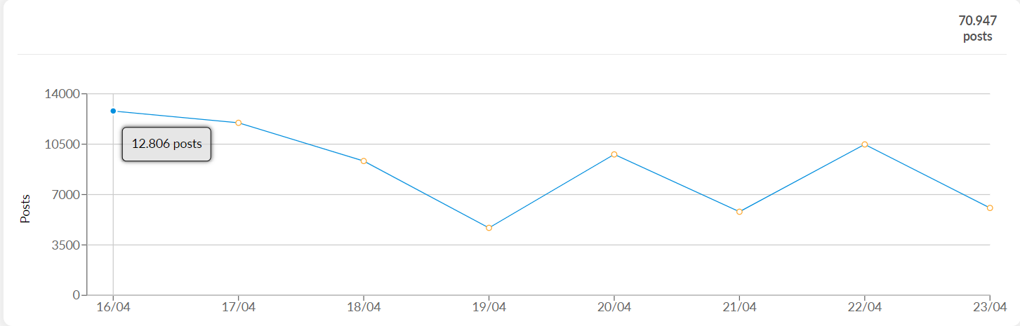 Com isso, o volume de interações nas redes sociais sobre esse assunto cresceu a ponto de atingir 70.947 publicações, segundo dados do Buzzmonitor Trends, dentro do período de 7 dias (16/04/2020 até 23/04/2020).