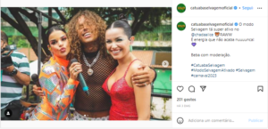 O primeiro post de carnaval feito pela Catuaba foi em 27 de janeiro, anunciando a participação no bloco, apelidado de Chá Selvagem, em alusão à bebida. Todos os demais conteúdos relacionados à carnaval tiveram relação com o bloco, que teve como atrações a banca Babado Novo e os cantores Juliette e Vitão. A marca publicou muitas fotos do evento, dos cantores e do público.