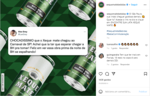 Além disso, a marca intensificou a campanha de carnaval faltando uma semana para a folia. Nesse segundo momento, contou com o patrocínio em prévias carnavalescas, como o Bloco da Lexa, em São Paulo (SP), e o Olinda Beer, em Olinda (PE). A parceria com influenciadores nestes eventos também foi outra estratégia usada na campanha, como o Tokinho (@tokinhooficial), a Gabô (@gabopantaleao) e o Ítalo Sena (@senaitalo).