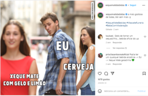Além disso, alguns posts sobre a bebida e a presença dela nos “rolês”. Apesar de ser uma empresa com mais de 30 anos no mercado, a Catuaba se posiciona como uma empresa jovem e focada no público jovem. E isso é refletido na comunicação moderna, que conta com gírias e memes.