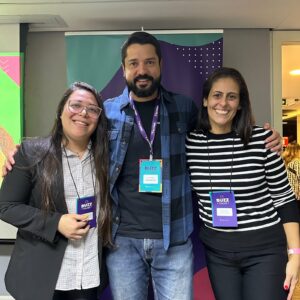 Nosso mediador Bruno Braga (Diretor de Novos Negócios e Marketing na Buzzmonitor) dividiu palco com duas convidadas especiais: Daniela Perez (Coordenadora de Operações na Teleperformance) e Nathalia Inada (Supervisora de Mídias na Teleperformance).