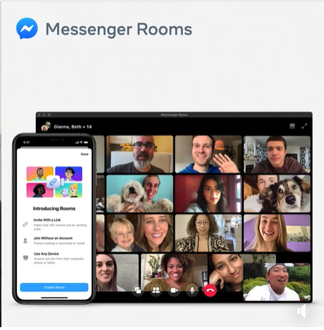 O Facebook irá lançar uma nova ferramenta chamada Messenger Rooms. Com ela, é possível criar uma sala e convidar pessoas através de um link, mesmo que não tenham uma conta no Facebook. As salas podem ter um link público e o app será integrado ao Messenger, mas poderá ser acessado de outras formas.