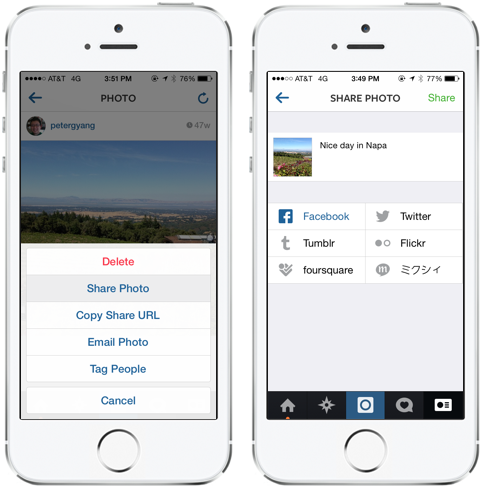 Recentemente, o Instagram adotou a opção de compartilhar histórias explicitamente, ou seja, de forma manual, solicitando uma mudança pelo Open Graph do Facebook.