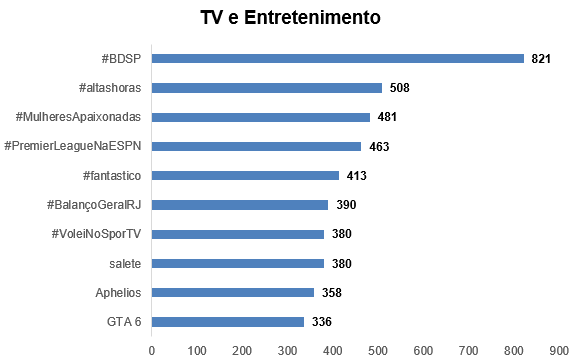 Na categoria TV e Entretenimento, as hashtags utilizadas pelo público para comentar programas de TV foram as mais recorrentes.