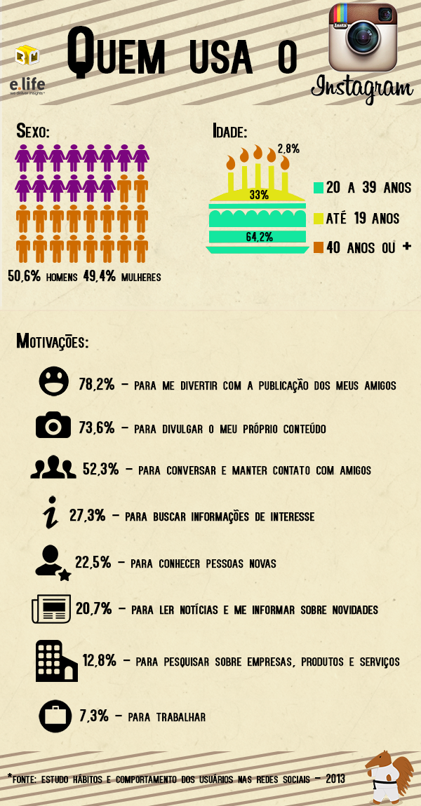 O primeiro post é sobre o Instagram! No infográfico abaixo você poderá ter uma ideia de quais informações foram extraídas da pesquisa:
