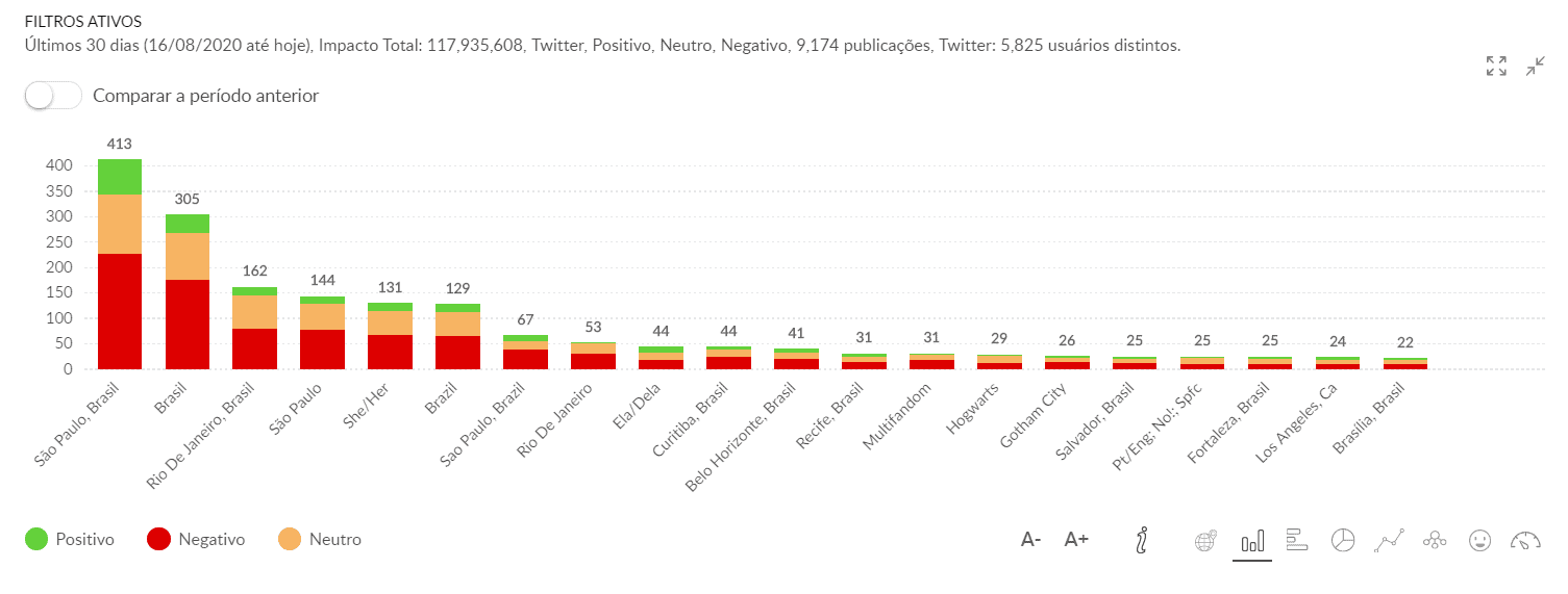 A ferramenta de localização de consumidores tem a capacidade de identificar e categorizar as informações de localização dos usuários que discutem uma marca, produto ou tema específico nas redes sociais.