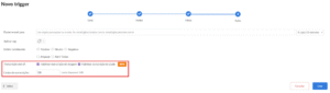 3- Em Ações, habilite as opções desejadas para a transcrição, defina um limite de stories a serem transcritos e crie seu trigger: