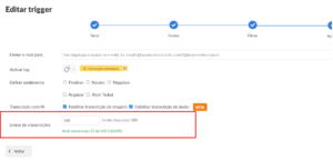 👀 Você pode acompanhar o consumo da transcrição acessando um trigger ativo. Nesse local, é possível visualizar quantas transcrições já foram utilizadas em relação ao limite disponível da conta:
