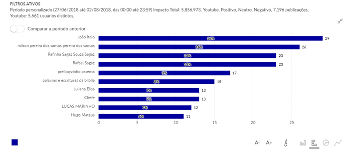 Observamos que apenas quatro internautas geram mais de 100 comentários no vídeo e, ao clicar nas interações feitas, vemos que elas são respostas aos comentários de outros internautas e que incitam discussões sobre o vídeo.