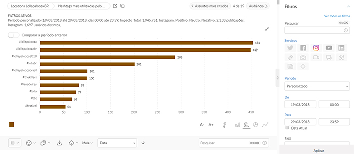 Nos dias 23, 24 e 25 de março aconteceu em São Paulo mais uma edição do Lollapalooza! Para acompanhar o evento e não perder nenhum detalhe, fizemos um monitoramento com as principais informações. Eles podem servir de inspiração para que você monitore o próximo evento que sua empresa fizer ou participar!