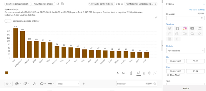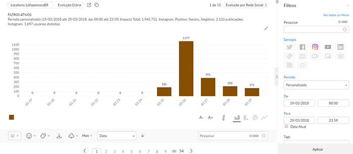 No caso, o evento foi realizado no Autódromo de Interlagos, o que permite que sejam monitoradas as Locations Autódromo de Interlagos e Lollapalooza Brasil 2018.