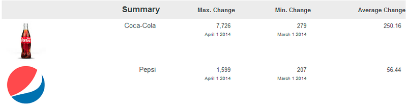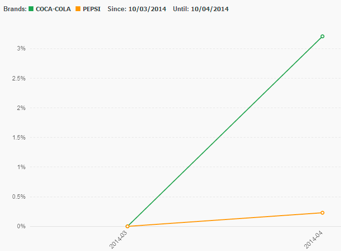 Na captura de tela abaixo, o crescimento da Coca-Cola em relação à Pepsi é bem claro.