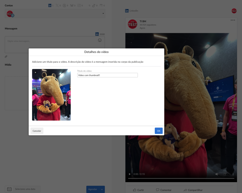Agora, publicações com vídeo criadas para LinkedIn podem incluir uma thumbnail e título personalizados. Essa melhoria permite maior controle sobre a apresentação visual dos conteúdos, ajudando a otimizar o engajamento e a atratividade das publicações.