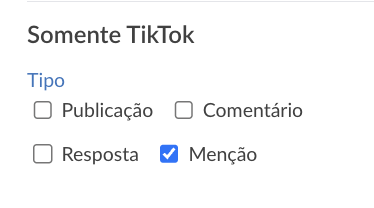 Adicionamos uma nova opção ao filtro de tipo exclusivo do TikTok em relatórios e triggers, facilitando o acompanhamento dessas interações.