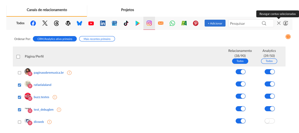 Agora é possível selecionar e remover várias contas de uma só vez no Gerenciador de Páginas e Perfis, tornando a gestão de acessos mais rápida e eficiente.