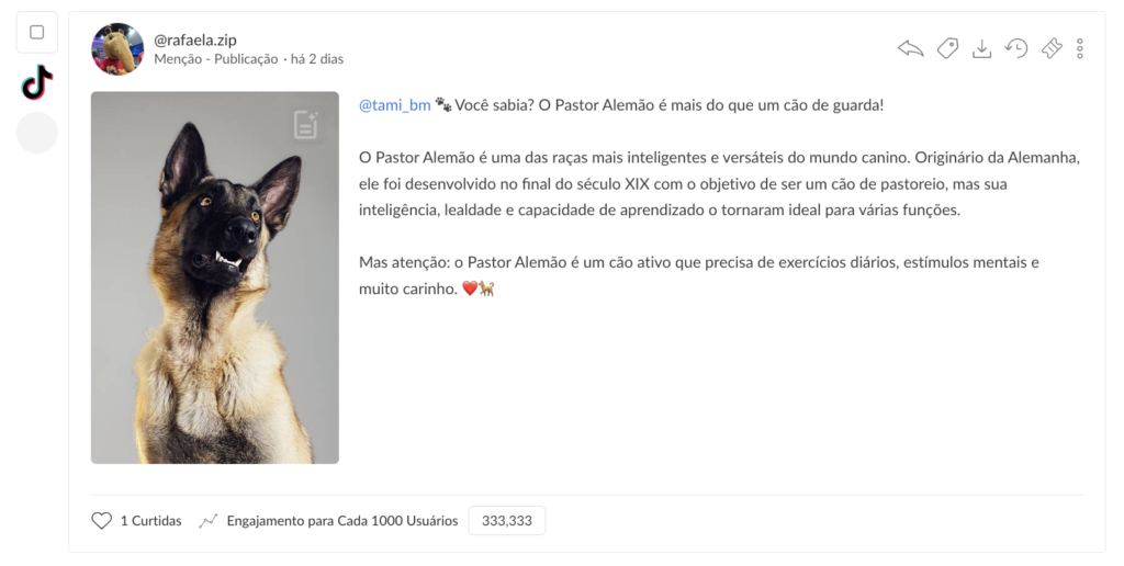 Agora é possível monitorar menções feitas a contas associadas do TikTok, ampliando a cobertura e o acompanhamento da presença da marca.
