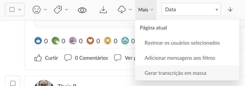 Agora é possível solicitar a transcrição das imagens de interações em massa com o uso de inteligência artificial, otimizando a triagem e análise. A solicitação pode ser feita diretamente nos relatórios, e os resultados são exibidos após o processamento.