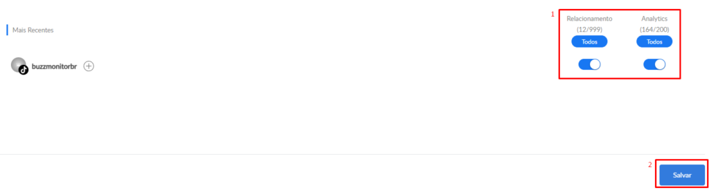 3- Em seguida, habilite as opções de Analytics ou apenas Relacionamento dos perfis desejados. Por fim clique em Salvar no canto inferior direito.