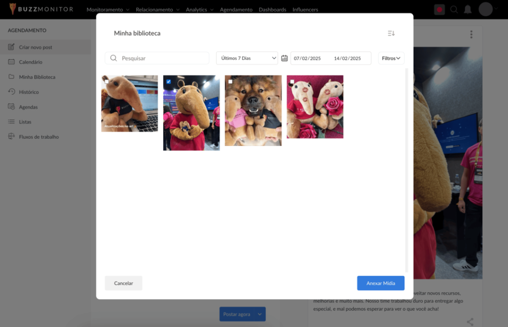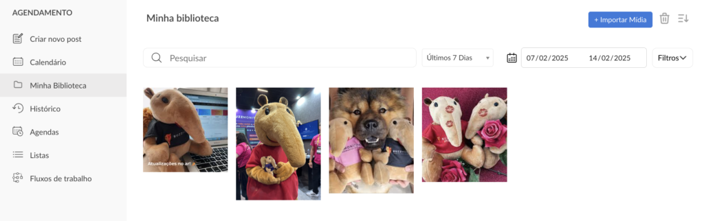 Uma nova opção foi adicionada para facilitar o processo de criação de publicações! Agora é possível fazer o upload e armazenar mídias em uma biblioteca própria dentro do módulo de agendamento.