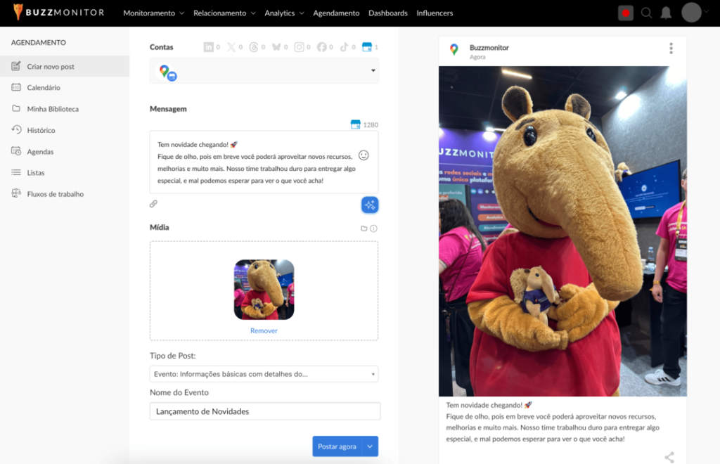Essa integração facilita o gerenciamento das publicações e amplia a eficiência na administração de vários locais, proporcionando mais controle e praticidade no planejamento de conteúdos, permitindo a criação de publicações e fluxos para os locais associados.