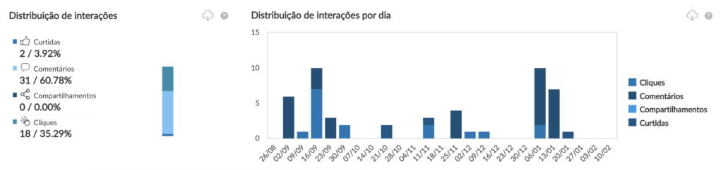 A métrica de cliques foi incorporada aos cálculos de engajamento e agora aparece na distribuição de interações para as páginas de LinkedIn, permitindo uma análise mais detalhada do desempenho nas interações da plataforma.