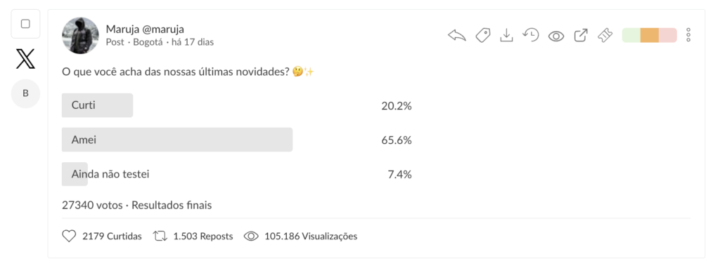 Publicações com enquetes agora exibem as opções e suas respectivas porcentagens diretamente nas interações, facilitando a análise desses conteúdos.