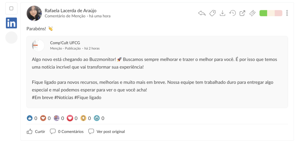 Agora, comentários em publicações de terceiros que mencionam as páginas associadas à Buzzmonitor passam a ser coletados, permitindo uma análise mais completa das interações.