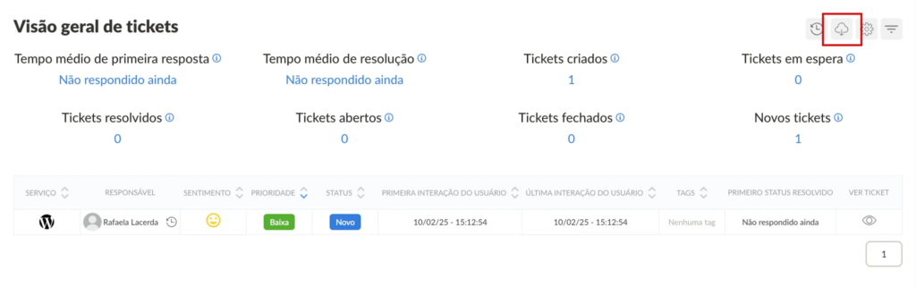 A visão geral de tickets foi aprimorada para oferecer um acompanhamento mais detalhado do fluxo de atendimento, com novas opções de personalização, exportação e ordenação.