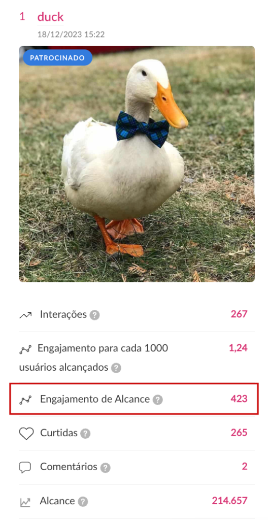 ⭐ Métrica “Engajamento de Alcance” em publicações patrocinadas de Facebook e Instagram