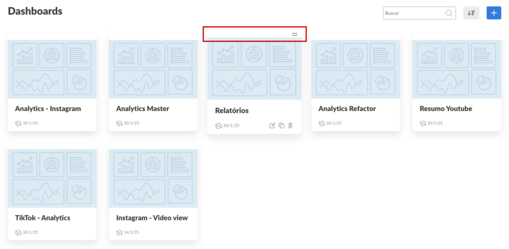 Agora é possível reorganizar a lista de dashboards, segurando e arrastando os painéis para a posição desejada, permitindo uma organização mais flexível e personalizada.