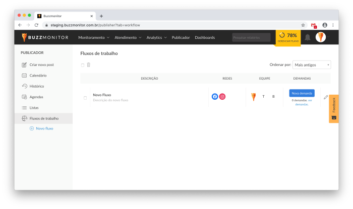 Agora fluxos de publicação poderão incluir diversas demandas. Cada demanda irá representar um post a ser agendado e o fluxo de construção individual.