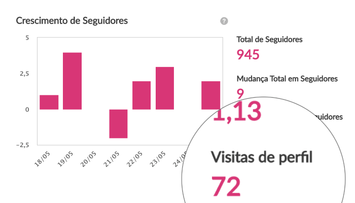 Adicionamos uma nova métrica ao sumário de informações dos perfis do Instagram. Essa métrica de visitas feitas ao perfil está disponível apenas para páginas que a conta administra.