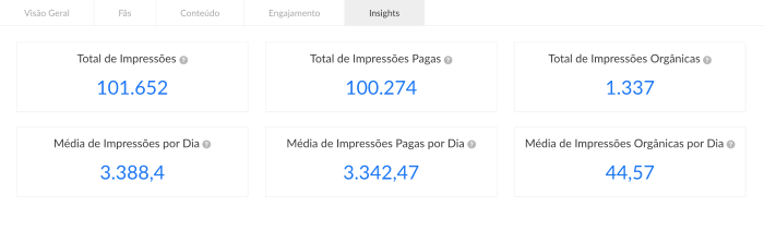 As métricas de total e média de impressões (pagas e orgânicas) foram adicionadas à aba de insights do Facebook no Buzzmonitor Analytics Pro.