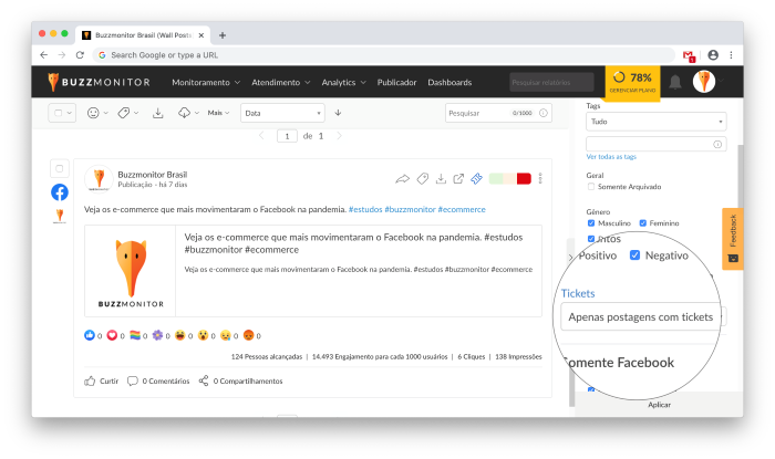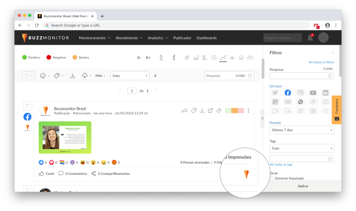 A interação é ocultada na própria rede social e não no Buzzmonitor.