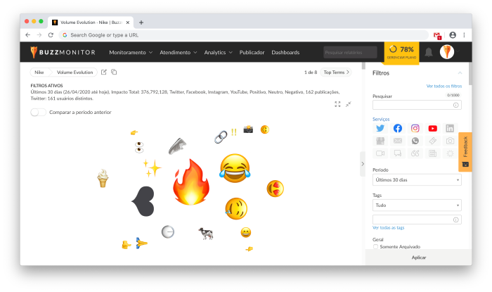 Para continuar sendo a plataforma de social media mais completa e flexível de social media e CRM passamos as últimas semana trabalhando para abrir o mês de Junho / 2020 com muitas novidades. Há novas funcionalidades de Atendimento, novas métricas de Analytics, novos gráficos (Emojis) e muito mais. Confira as novas funcionalidades disponíveis a partir desta sexta-feira, dia 29 de maio de 2020: