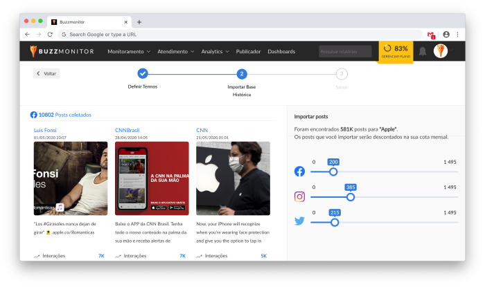 Assim será possível incluir no projeto interações que já foram coletadas sobre o mesmo tema. Funcionará de forma semelhante ao Buzzmonitor Trends.
