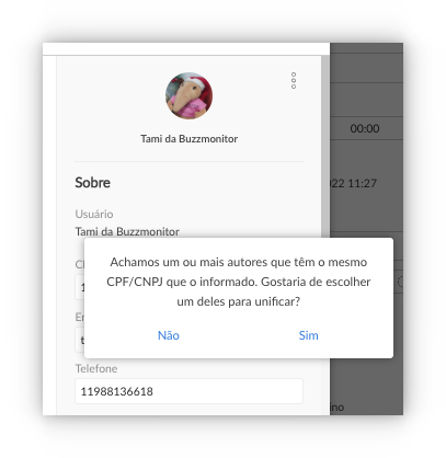 Agora, é possível adicionar também o CNPJ aos detalhes do autor de uma interação. Caso já exista algum registro para o CNPJ inserido, a opção de unificação os autores será exibida.