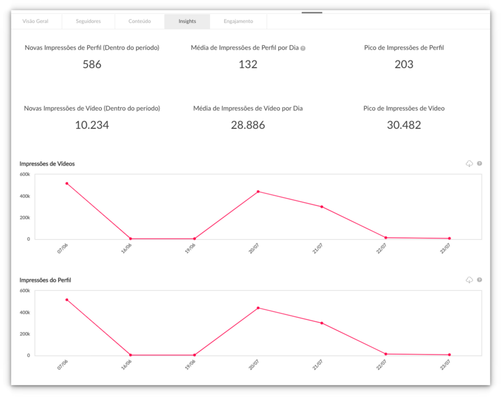 Agora é possível obter informações ainda mais abrangentes sobre o desempenho de suas páginas. Implementamos a exibição de novas métricas de engajamento e interações para as páginas de TikTok associadas no Analytics Pro.