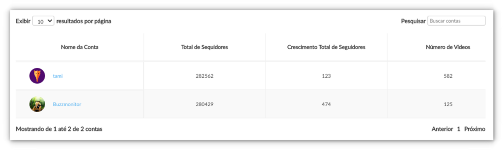 Agora, é possível personalizar a quantidade de contas exibidas por página, adicionamos uma funcionalidade de busca, possibilitando o filtro das contas exibidas de acordo com suas necessidades específicas e incluímos a opção de ordenação por métricas, tornando a navegação mais fácil e conveniente.
