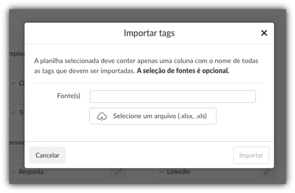 Agora é possível criar várias tags de forma mais simples, importando uma lista de tags através de uma planilha.