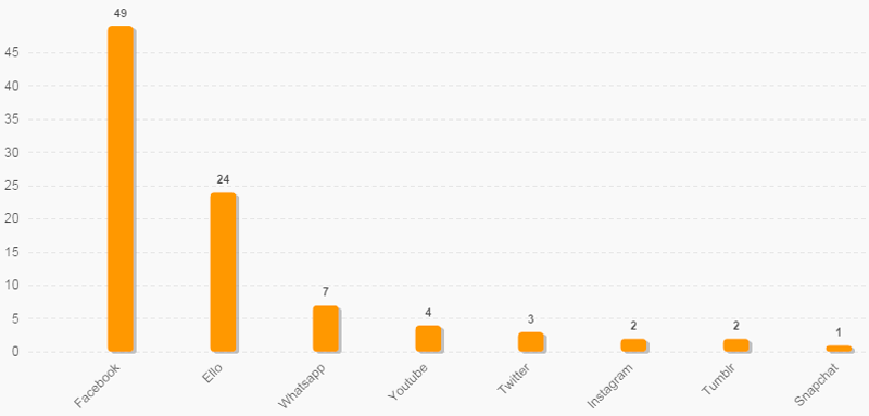 Com 24 menções, a rede social Ello foi a segunda plataforma mais citada na última semana pelos membros do grupo Entusiastas de Social Media. Ainda, Facebook foi o termo mais usado junto ao nome da nova rede social (4 menções), devido a polêmica sobre o Ello ser capaz ou não de pôr fim a rede de Mark Zuckerberg.